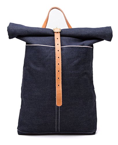 Loyal Stricklin Selvedge Denim Travel Rucksack Backpack Leather Trimmed Blue