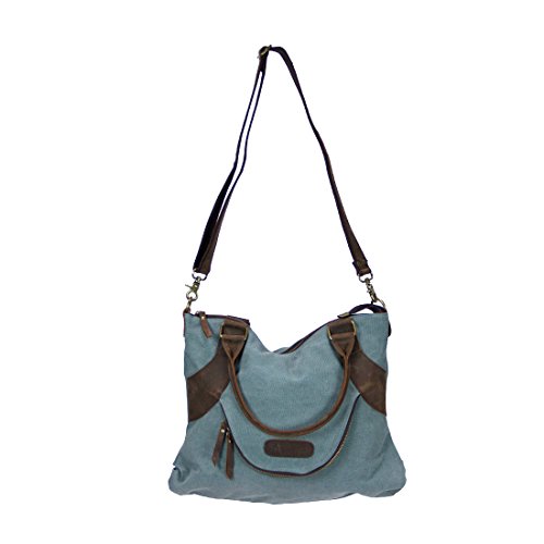 All images of Bella Medium canvas bag shoulder bag hand bag designer bag handmade city bag unique look petrol (Khaki)