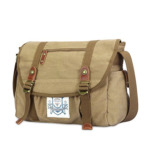 SARATIN Mens Boys Canvas Shoulder Bag for Travel Business Messenger Bag Khaki