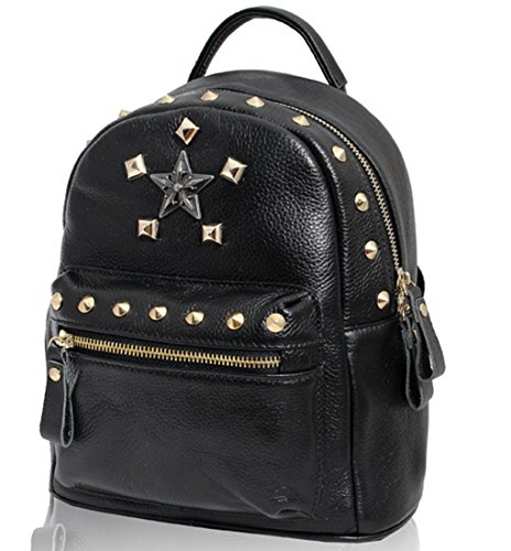 Oncefirst Women's Real Leather Modern Design Deluxe Fashion Backpacks Black