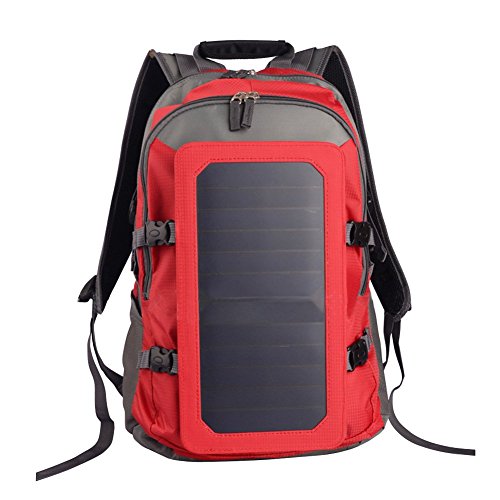 Solar Powered Backpack with 6.5 Watts Solar Panel Camping Hiking Outdoor Sports Red