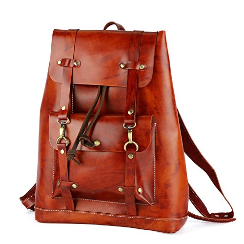 Kinglang Genuine Leather Vintage Backpack knapsack College Bag